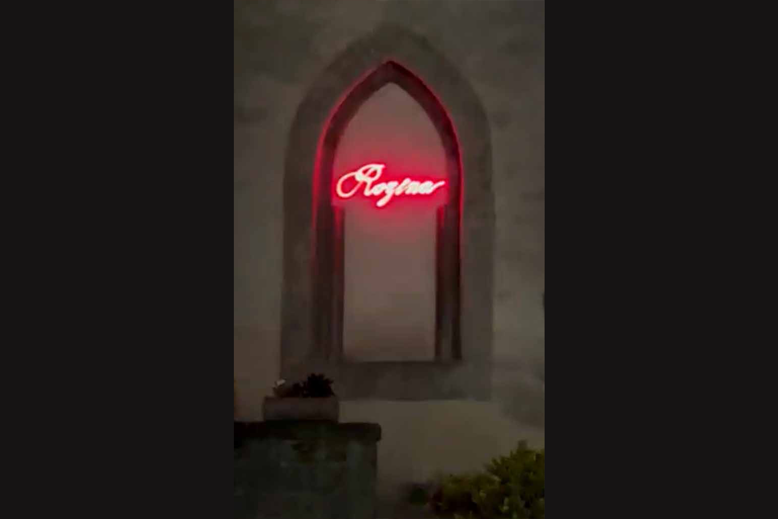 laser, propisování v zazděném gotickém okně, site-specific, zobrazení každých 15 minut